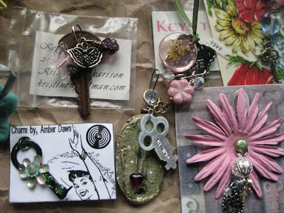 Members of various art charm swap groups have given me permission to post some of their handmade work here. So I am also going to share more with you about worldwide charm exchanges as well as showcase the work of several awesome and talented charm designers!
